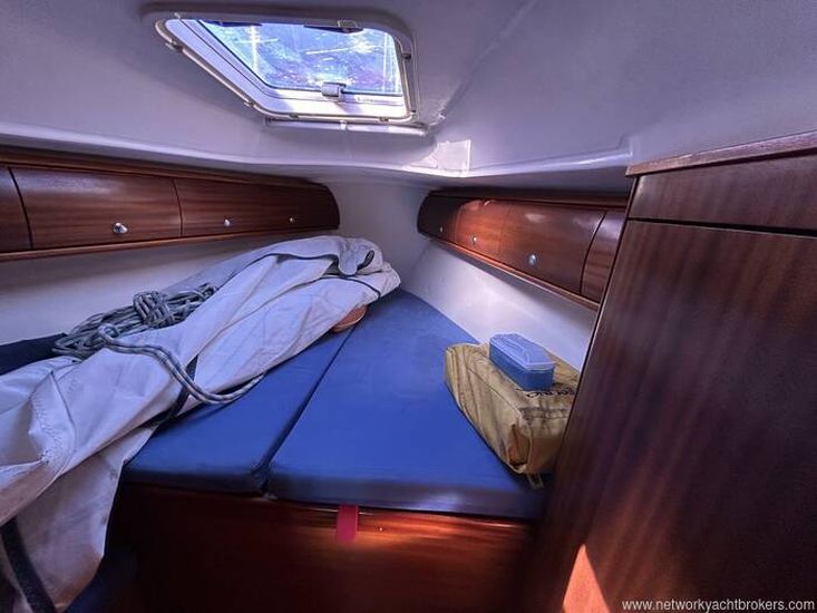 Forward cabin with double bed, storage and opening deck hatch