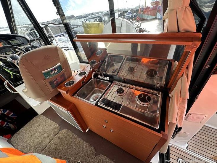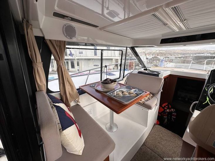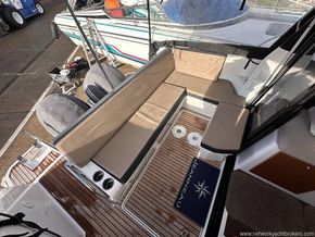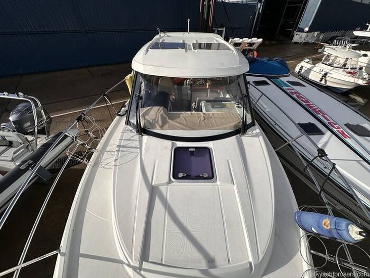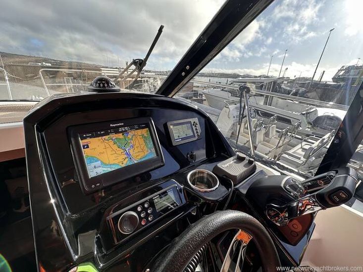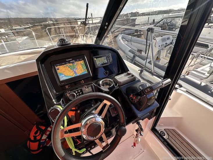 This particular example is the offshore version equipped with twin 300 litre fuel tanks, Cat B rated vessel, Twin Yamaha 200hp engines with full Yamaha service history, trim level premiere pack, comfort pack, Raymarine electronic pack, bow thruster, Lenco Trim Tabs, diesel heating, cockpit aft closing kit and Bimini, U-shaped cockpit seating, AIS transponder, new batteries - 2024 and much more.