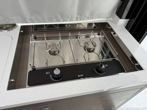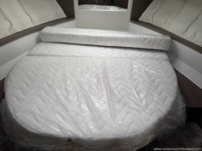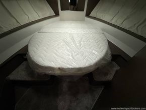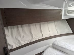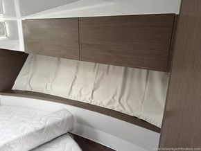There is a large 2m long island berth double in the master, forward cabin that also has a large storage under the berth. This cabin also has the upgraded storage lockers overhead. This cabin has a large amount of light coming in from the long sea vision inspired potholes and the deck hatch which allows for ventilation. This cabin also has the option extra overhead storage lockers fitted and has a hanging wardrobe on the Portside. This cabin also has ambient, indirect LED lighting as part of the Premier pack.