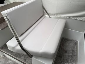 This new version integrates an elongated line, inspired by larger models of the new generation. Contemporary windows in the hull and the coachroof, with its distinctive design, integrate seamlessly into a powerful, sporty silhouette. The new hull enables planing from 20 knots, ensuring comfort and manoeuvrability.