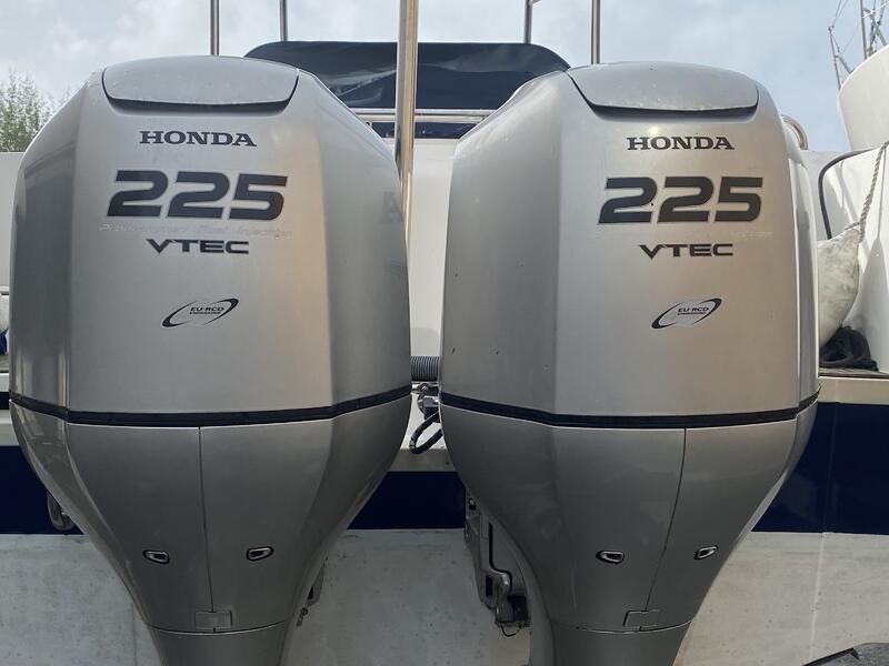 Twin Honda 225 VTEC 4 stroke outboards, power tilt and trim. Low engine hours 495. Serviced by Honda