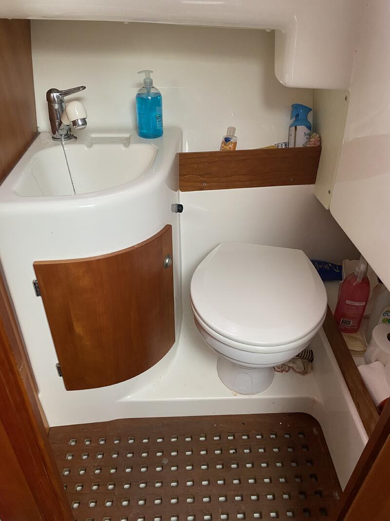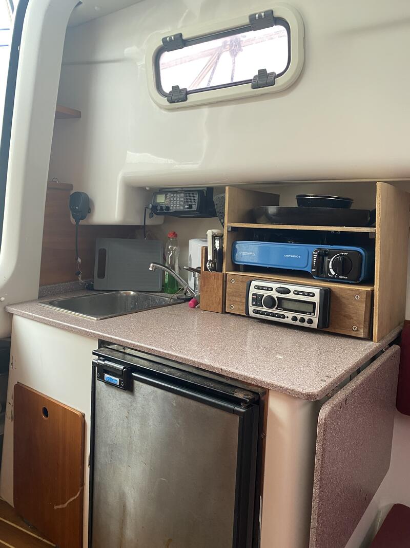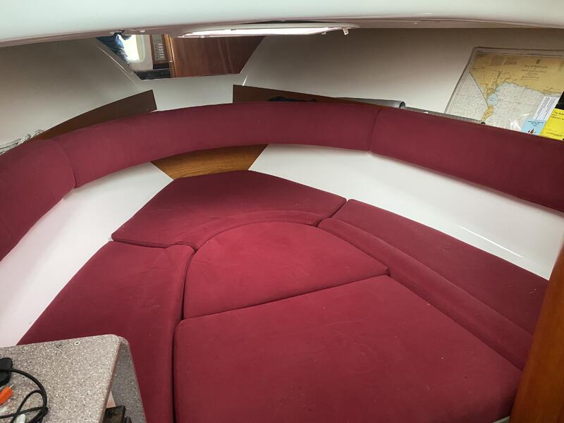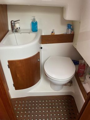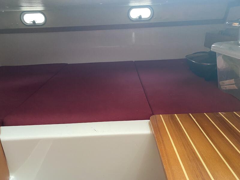 4 berths, 2 in main cabin with table to covert to a spacious double, additional double berth accessible from main cabin under the cockpit floor.